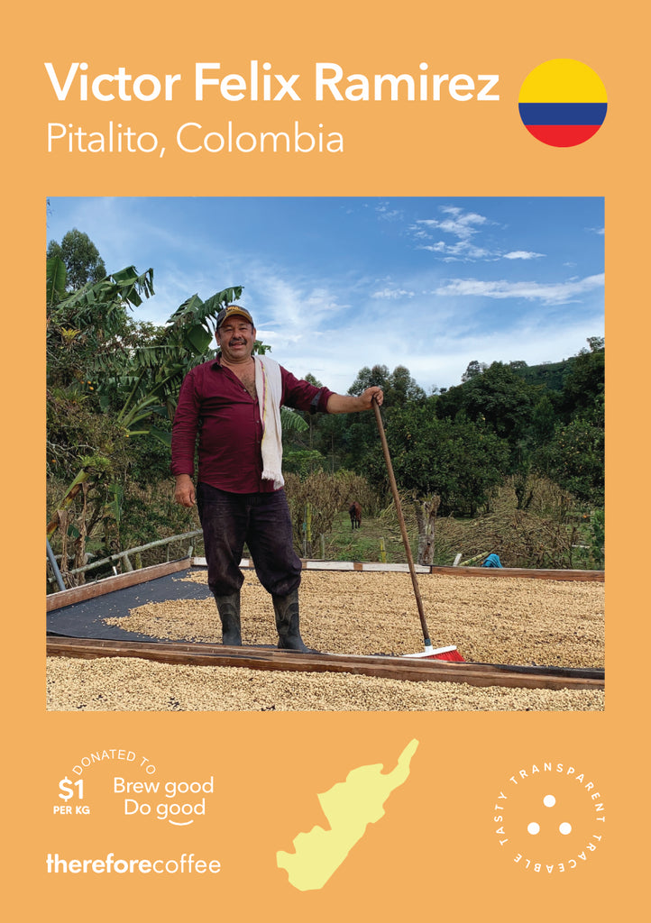 Victor Felix has been in coffee since a young age as his parents are coffee growers. When he got married, he and his wife, Blanca Rubi decided to buy their own farm in the rural area of Pitalito, south of the Huila region, they named it La Fortuna (The Lady Luck.) From the start, he knew that the piece of land would bring good fortune and luck. Their journey in coffee has been going strong for 35 years now and it was 3 years ago they made the switch to specialty coffee. This change was motivated by the idea of providing a better future for his family and having a better income. Also, this change has brought a change of mindset for Victor. He is know keen to learn, he thinks more about quality and hence has acquired more knowledge that he has put into practice, improving the cup quality and the coffee trees. But also, and most important to him, coffee has united the family much more and he is proud that they all work together, achieving what they have today.